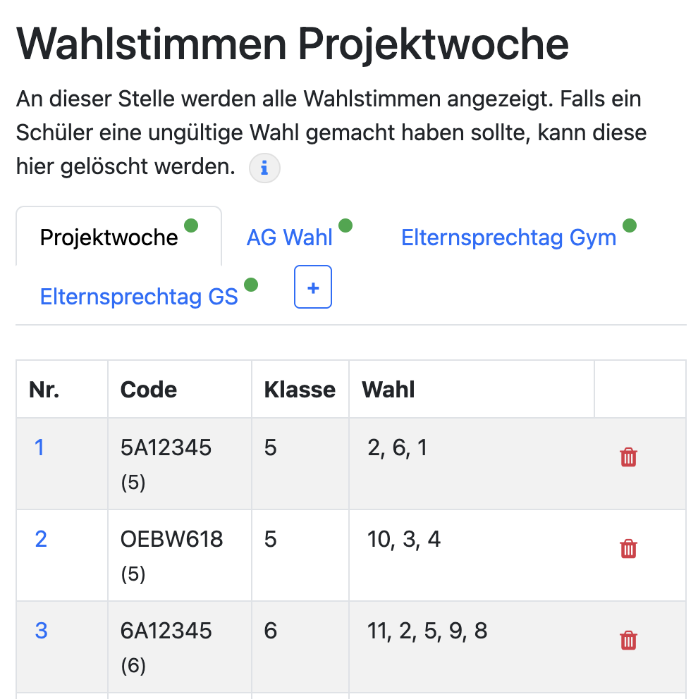 Sie sehen eine Übersicht aller Wahlstimmen mit den Infos: