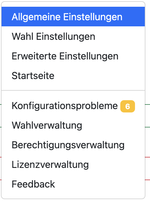 - Wahl Einstellungen/erweiterte Einstellungen: Konfiguration der Wahl, Festlegung des Wahlzeitraums, des Zuordnungsalgorithmus, Konfiguration der Texte, usw.